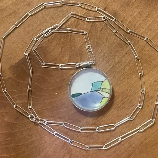 Petoskey Stone Pendant with Handmade Paperclip Chain